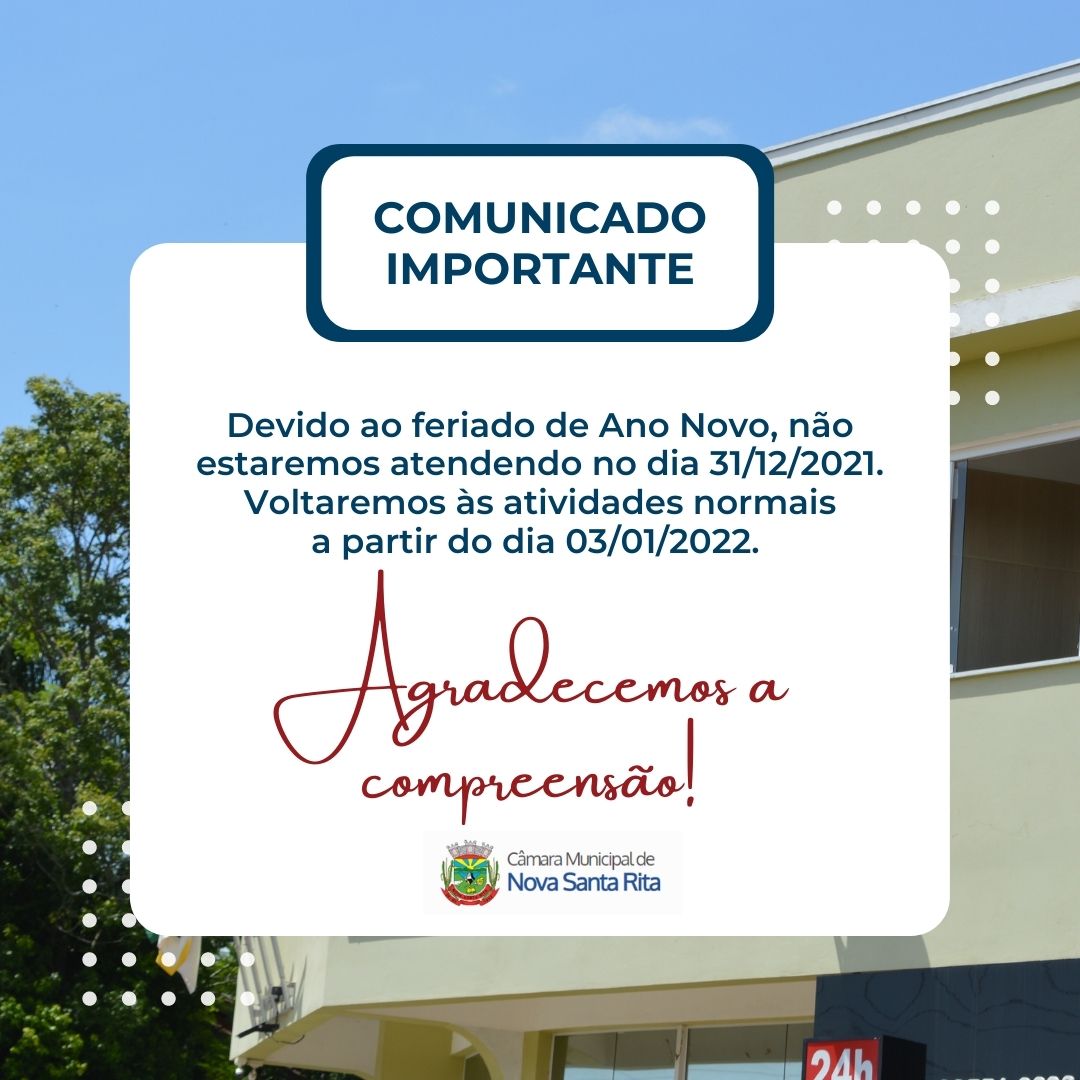 • Aviso de recesso em razão do Ano Novo