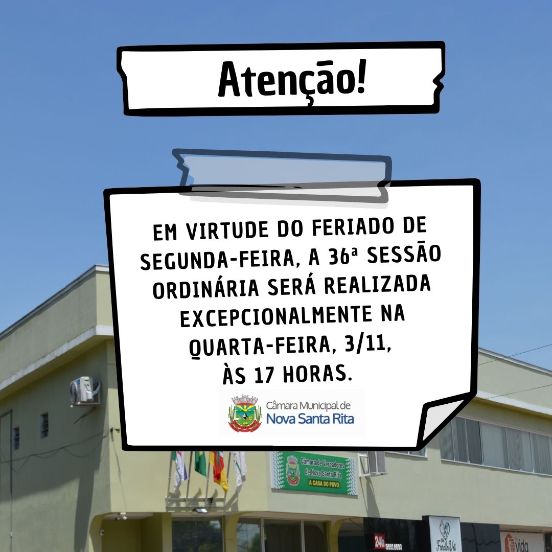 • Atenção para a data de realização da 36ª Sessão Ordinária!